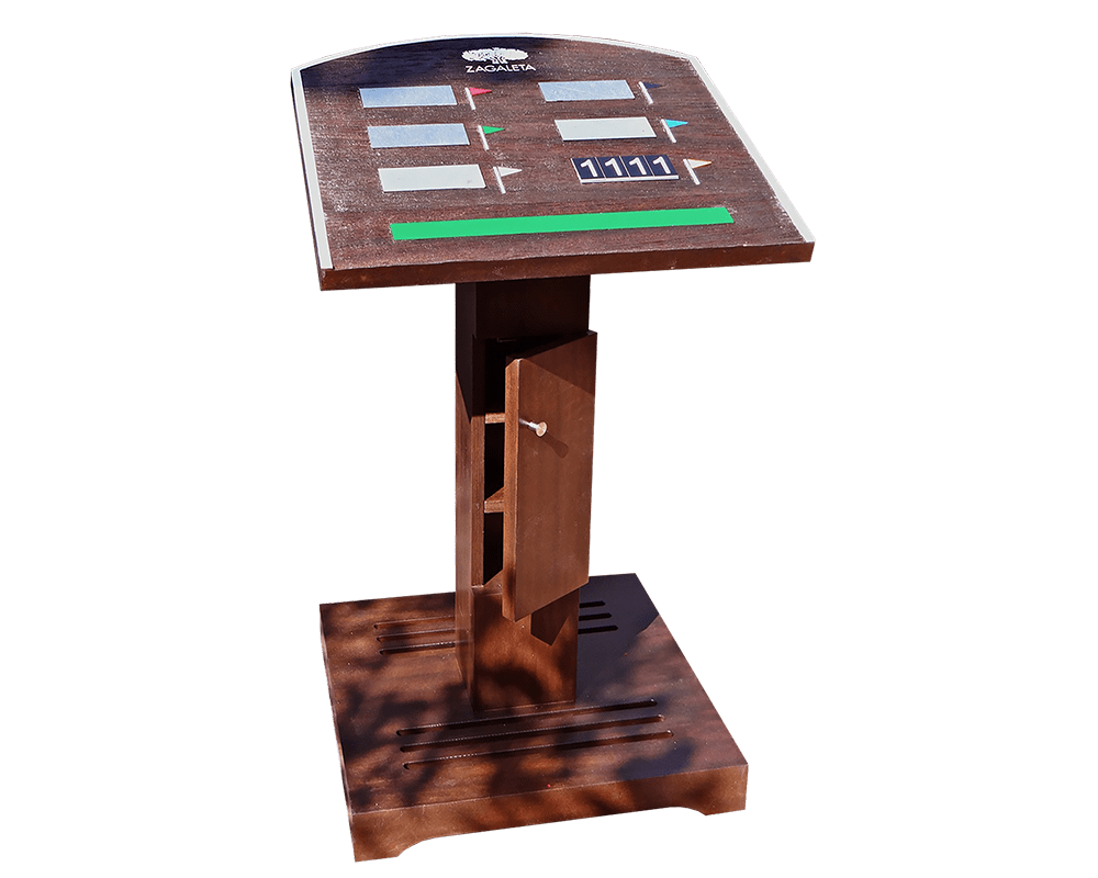 ATRIL para Targets de madera de iroko con tratamiento para exterior.