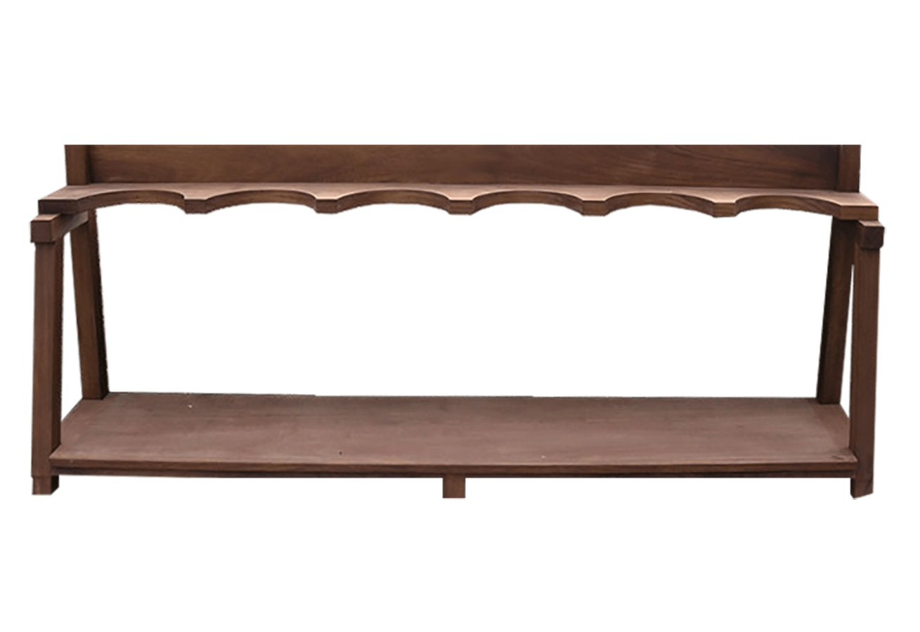 Bags Stand para seis bolsas, realizado en madera de iroko con tratamiento para exterior.
